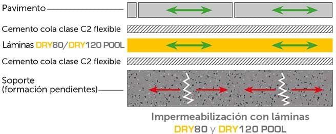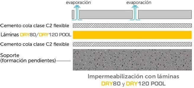Il sistema DRY è una soluzione per l'impermeabilizzazione che include due tipi di laminati: DRY80 e DRY120. Questi laminati sono progettati per risolvere con sicurezza qualsiasi problema di impermeabilizzazione, di terrazze, balconi, tetti inclinati, cornicioni, davanzali e superfici piane, superfici con finiture a ghiaia o superfici a verde naturale o artificiale.
